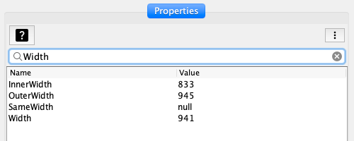 In the above screenshot, I am filtering the properties so that only the ones containing the word “Width” are shown.