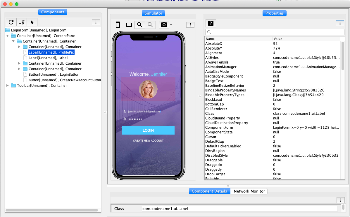 Firstly, we have added a new property sheet that shows you the value of all of the properties of the selected component in the component tree. This is useful for checking whether a container is scrollable, or what text property of a button is set to, or pretty much anything else you’d like to know about a component’s state.